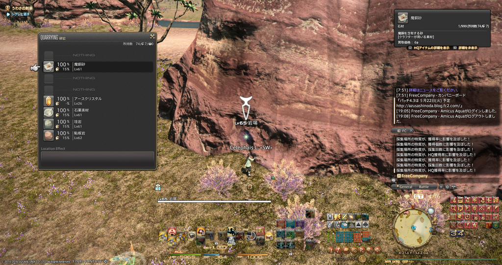 ぼくのマイスは錬金と彫金と木工なので、自作しやすいアクセを作ってみよう!と、鷹目石なる素材を取りに行ってみる(/・ω・)/ が、なんと識質が足りずHQ率0%の文字が…
