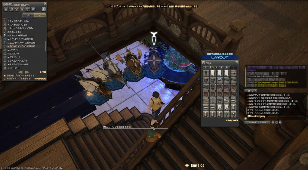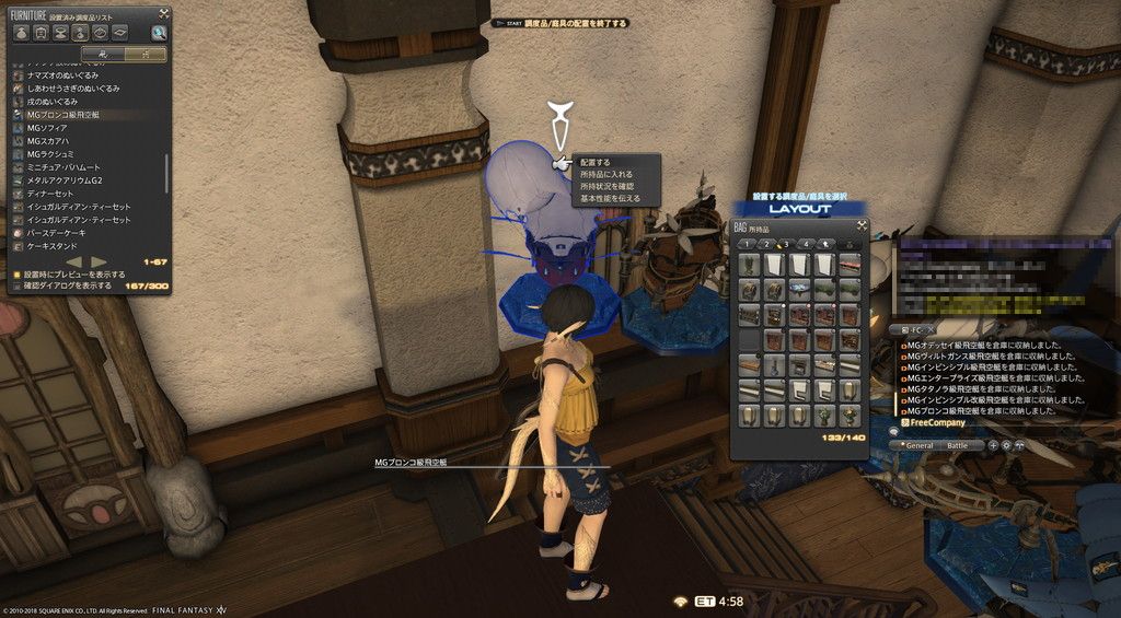 今回はこの方法で、階段上に広がってる何も置けない空間に飛空艇プラモを飛ばします