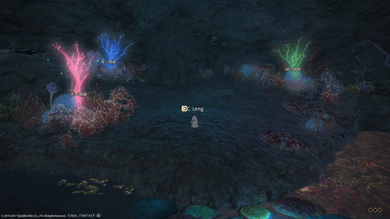 Boss1部屋まで来ると、色違いの光る珊瑚が生えている場所に出ます